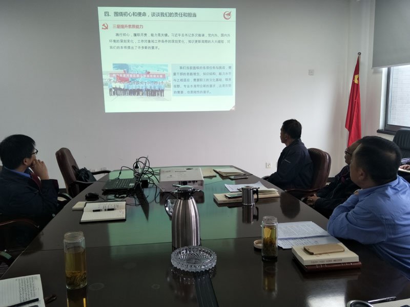 近日,根據(jù)公司黨支部“不忘初心、牢記使命”主題教育安排,公司領(lǐng)導(dǎo)班子成員分別到各部門開展調(diào)研座談;公司黨政主要領(lǐng)導(dǎo)結(jié)合學(xué)習(xí)、調(diào)研及聽取意見情況分別講授了專題黨課;全體黨員對照黨章黨規(guī)找差距檢視問題,推動主題教育持續(xù)縱深開展。